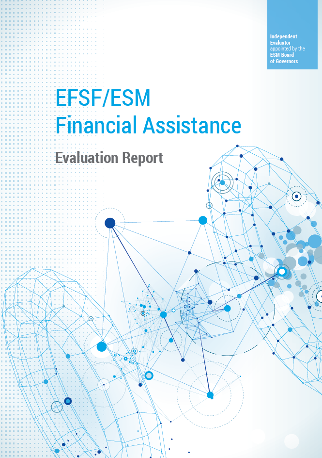 The Evaluation Report evaluates the relevance, effectiveness, and efficiency of EFSF and ESM financial assistance in safeguarding the financial stability of the euro area and its members. It primarily focuses on aspects that were not covered in detail by other evaluations, such as financing and the ESM programme governance framework. It is the first evaluation that covers all five euro area programme countries: Ireland, Portugal, Spain, Cyprus, and the second Greek programme up to its initial expiry in December 2014. These assistance pro- grammes, totalling almost €300 billion, are among the largest in modern history. The evaluation does not assess the political aspects of the Eurogroup negotiations or individual programme policies that were the specific responsibility of other institutions.