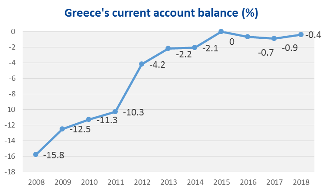 The improvement can also be seen in the falling current account deficit: to -0.4% in 2018 from -15.8% in 2008.