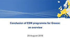 Greece successfully concluded its three-year ESM programme on 20 August 2018. This marked the end of the largest sovereign assistance package in history, comprising three distinct programmes. Thanks to unprecedented financial support, granted under very favourable terms, Greece was able to modernise its economy and regain the trust of investors.
