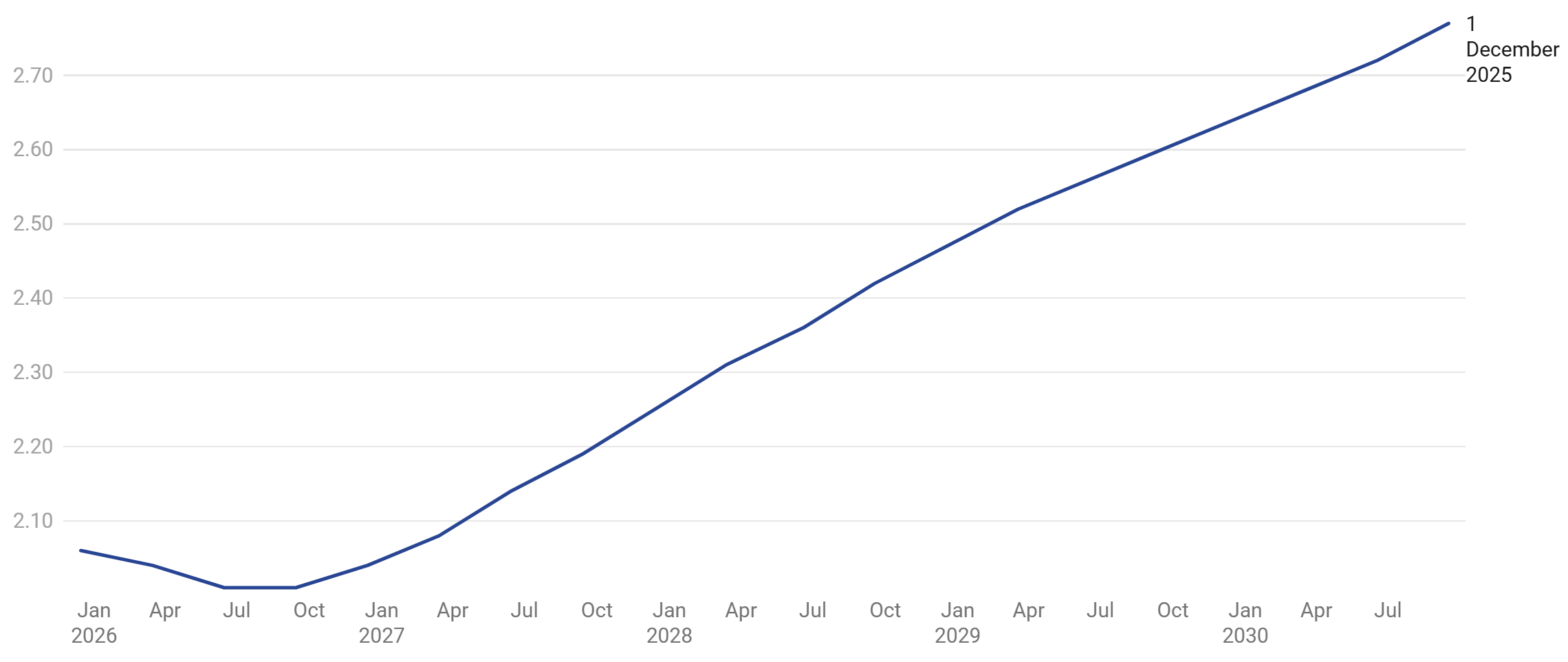Despite a challenging international environment marked by geopolitical tensions, the euro area has managed to maintain positive momentum. Gross domestic product (GDP) growth is forecast at 1.3% in 2025, 1.1% in 2026, and 1.5% in 2027. While these figures do not impress, they reflect a region that has steered clear of recession in a challenging environment.