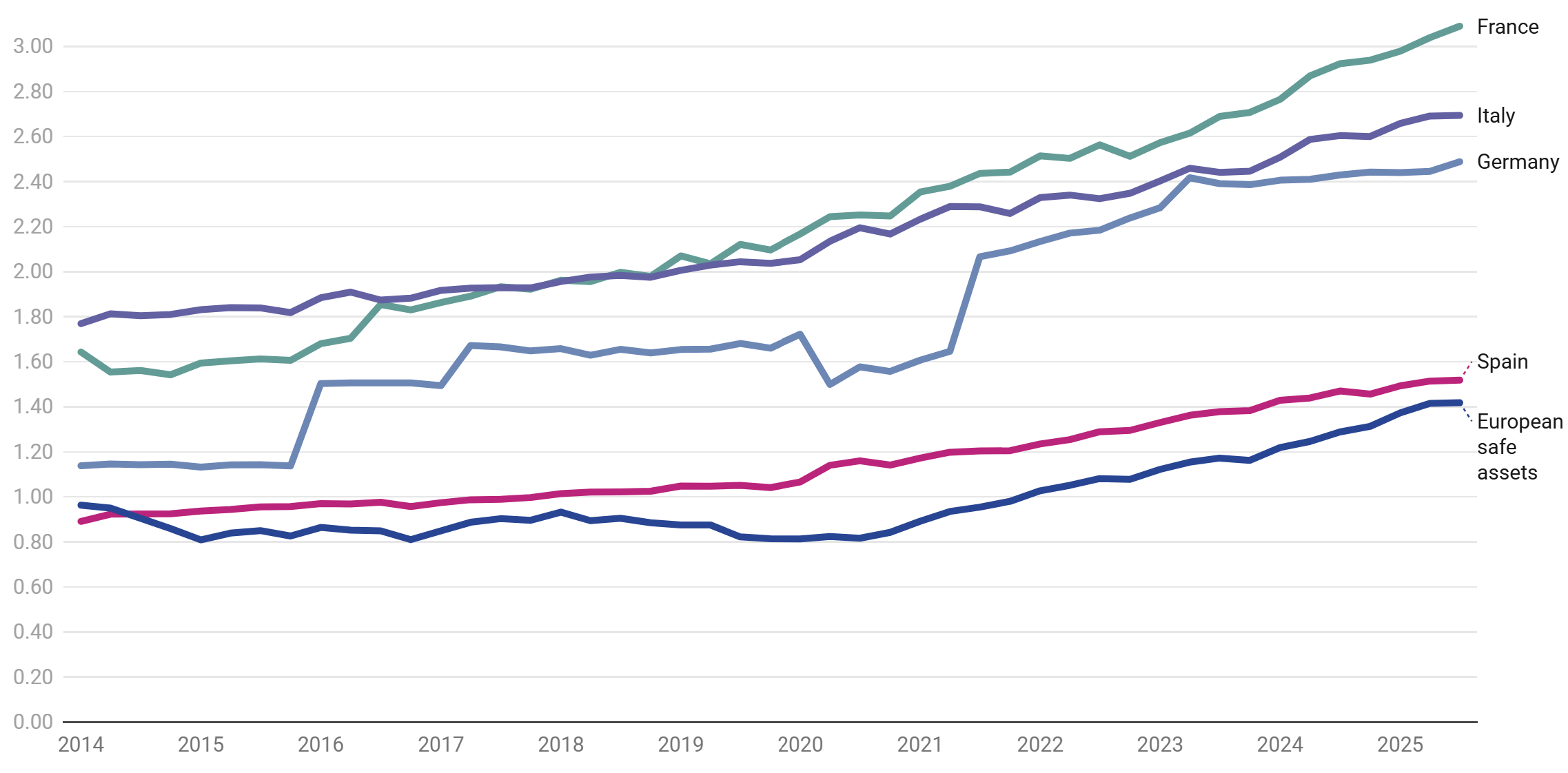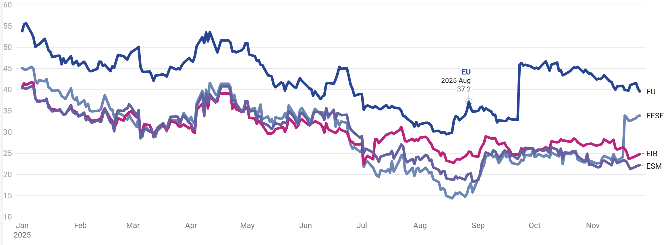 The ESM and EFSF play a central role in this ecosystem, offering highly rated and diverse investment products, and maintaining a large, global investor base. In 2026, we can expect European safe assets to grow further – especially driven by the EU Security Action for Europe (SAFE) instrument, which promotes investment and common borrowing for defence.