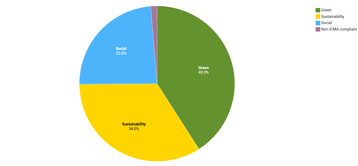 Sources: Issuers’ reported data, ESM calculations. “Non-ICMA compliant” ESG bonds refers to bonds purporting to address environmental, social, or governance objectives but issued without alignment to the voluntary international standards defined by the International Capital Market Association (ICMA).