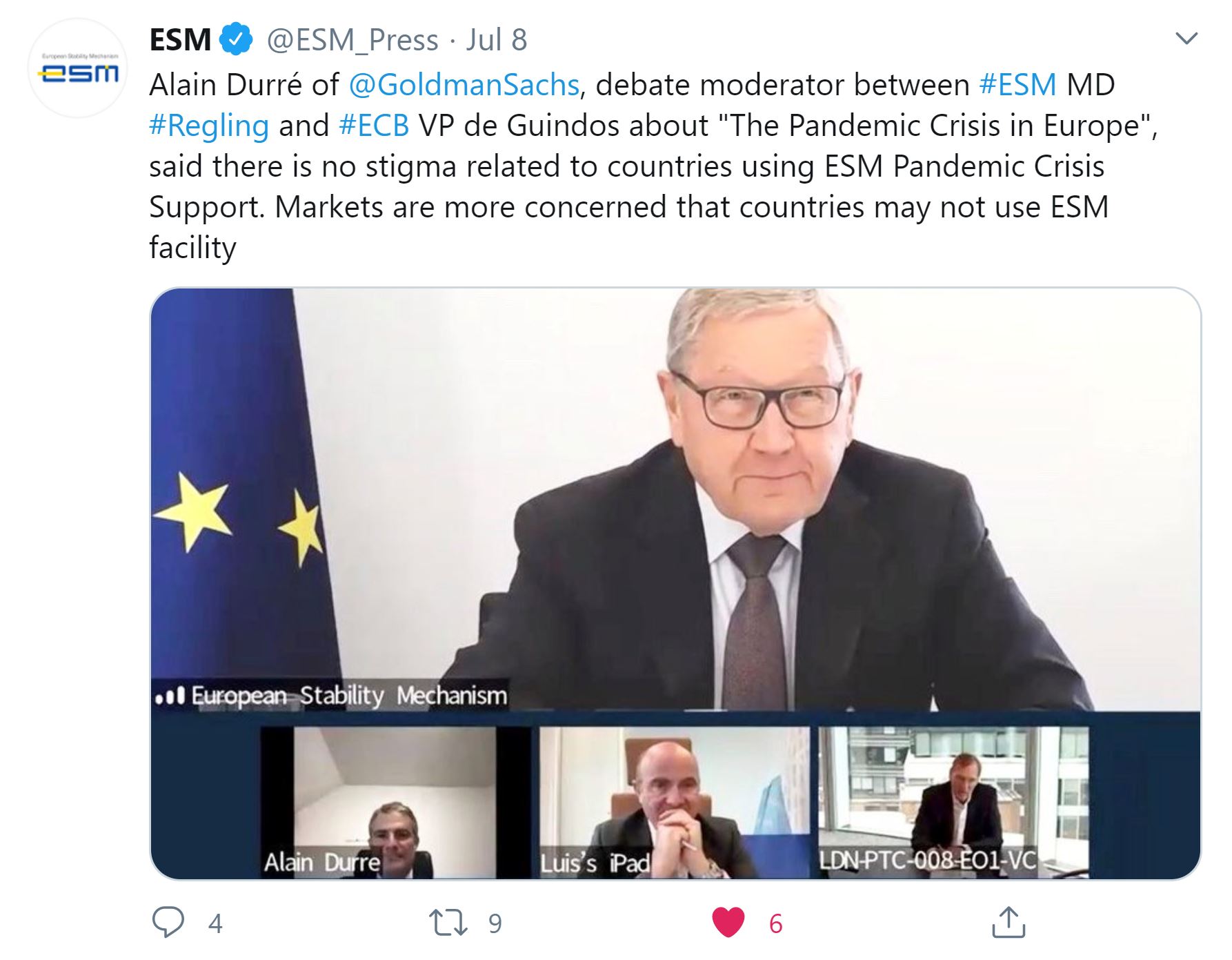 This means there is also no reason to see a stigma in requesting the Pandemic Crisis Support. It is a responsible decision to save taxpayers’ money. We have conducted investor calls with hundreds of our bond buyers around the world and these investors have confirmed there is no market stigma to use the ESM loans. Rather, they see the benefits.